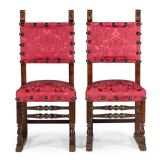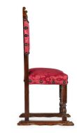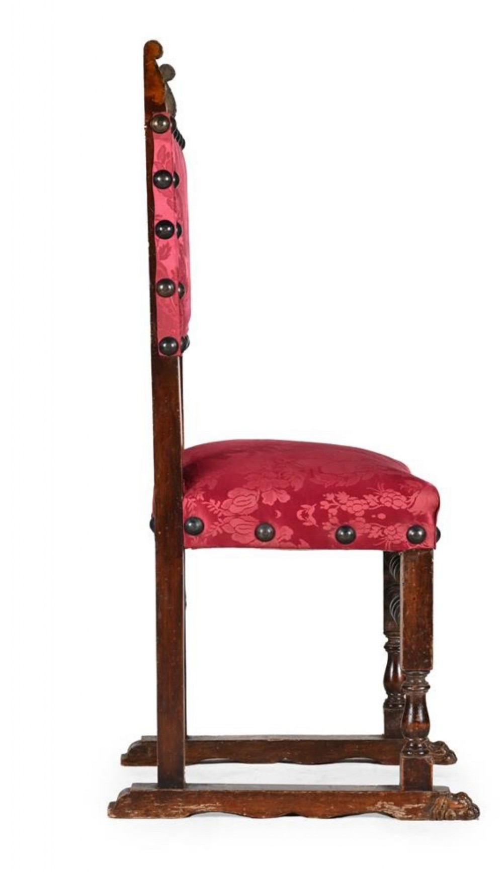 A pair of 18th century Italian walnut and upholstered side chairs Measuring Height 110cms Width 49 cms Depth 55cms Condition Good overalls treated worm holes on the backs but still completely strong and solid Delivery can easily be arranged for this item smaller items are generally sent free of charge to the uk, larger items can be sent via a courier, I keep this service as cheap as possible, the larger items are picked up and delivered to you within 7-10 days should you require a quicker delivery expect to pay at least double the normal cost. If you are unhappy with any item I offer a full money back guarantee once the item is safely back in my possession and undamaged as a result of misuse. Please feel free to ring me with any queries you may have, I'm always happy to discuss anything to do with antiques !! Opening hours Thursday to Saturday 10am - 6pm. Or by appointment.