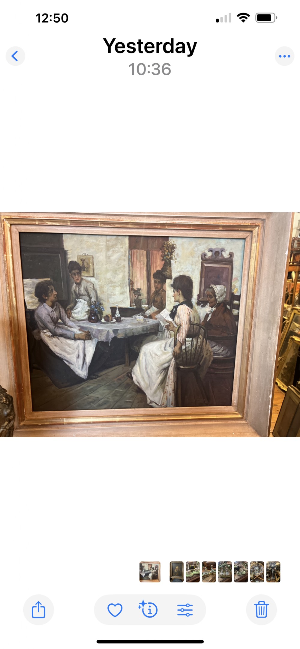 A large oil painting on board depicting the letter after the famous painting from the newlyn school artist Albert Chevallier Tayler, RBC (British, 1862-1925) Measuring Overall Height 72 cms Width 82 cms Condition Good, frame has wear but no damage Delivery can easily be arranged for this item smaller items are generally sent free of charge to the uk, larger items can be sent via a courier, I keep this service as cheap as possible, the larger items are picked up and delivered to you within 7-10 days should you require a quicker delivery expect to pay at least double the normal cost. If you are unhappy with any item I offer a full money back guarantee once the item is safely back in my possession and undamaged as a result of misuse. Please feel free to ring me with any queries you may have, I'm always happy to discuss anything to do with antiques !! Opening hours Thursday to Saturday 10am - 6pm. Or by appointment.