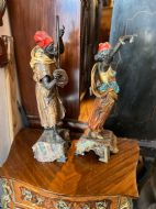 Pair of large painted spelter figures of Moroccan dancer and musician
