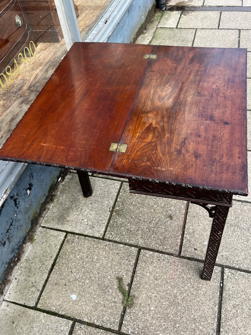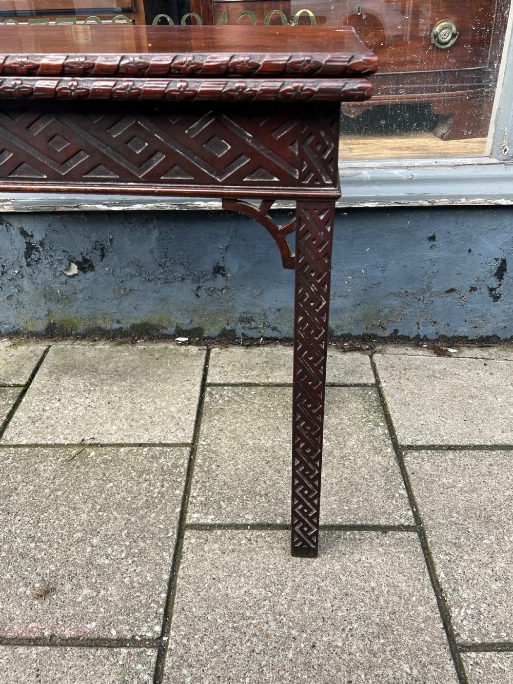 A small Chinese Chippendale style blind fretted tea table, this is made of Cuban mahogany