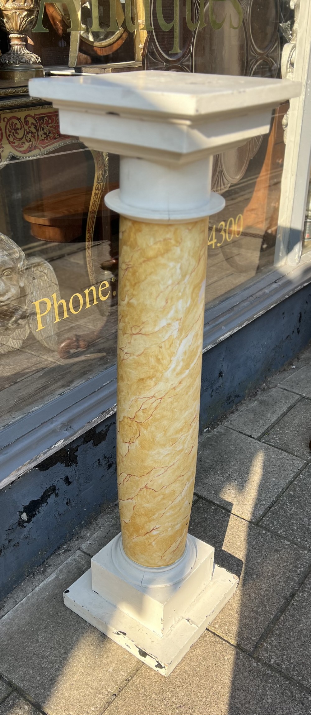 A C19th wooden column with turned socles the middle part painted to resemble sienna marble Measuring Height 122 cms Width 30 cms Depth 31 cms Condition Solid but some wear to the paint hear and there please view photos Delivery can easily be arranged for this item smaller items are generally sent free of charge to the uk, larger items can be sent via a courier, I keep this service as cheap as possible, the larger items are picked up and delivered to you within 7-10 days should you require a quicker delivery expect to pay at least double the normal cost. If you are unhappy with any item I offer a full money back guarantee once the item is safely back in my possession and undamaged as a result of misuse. Please feel free to ring me with any queries you may have, I'm always happy to discuss anything to do with antiques !! Opening hours Thursday to Saturday 10am - 6pm. Or by appointment.