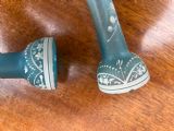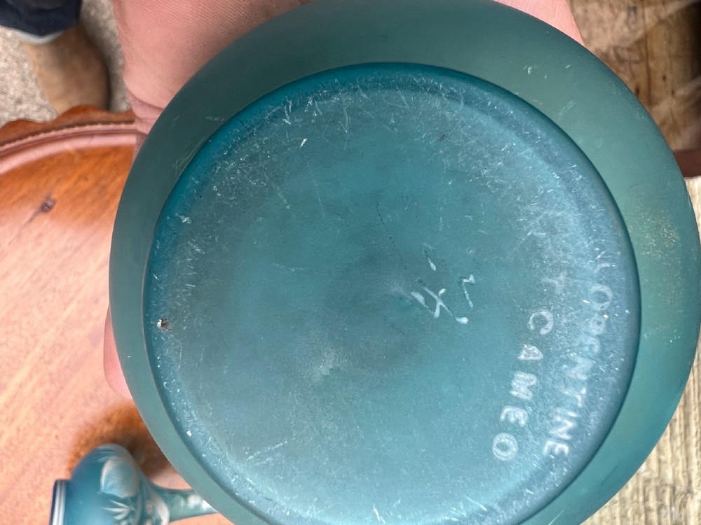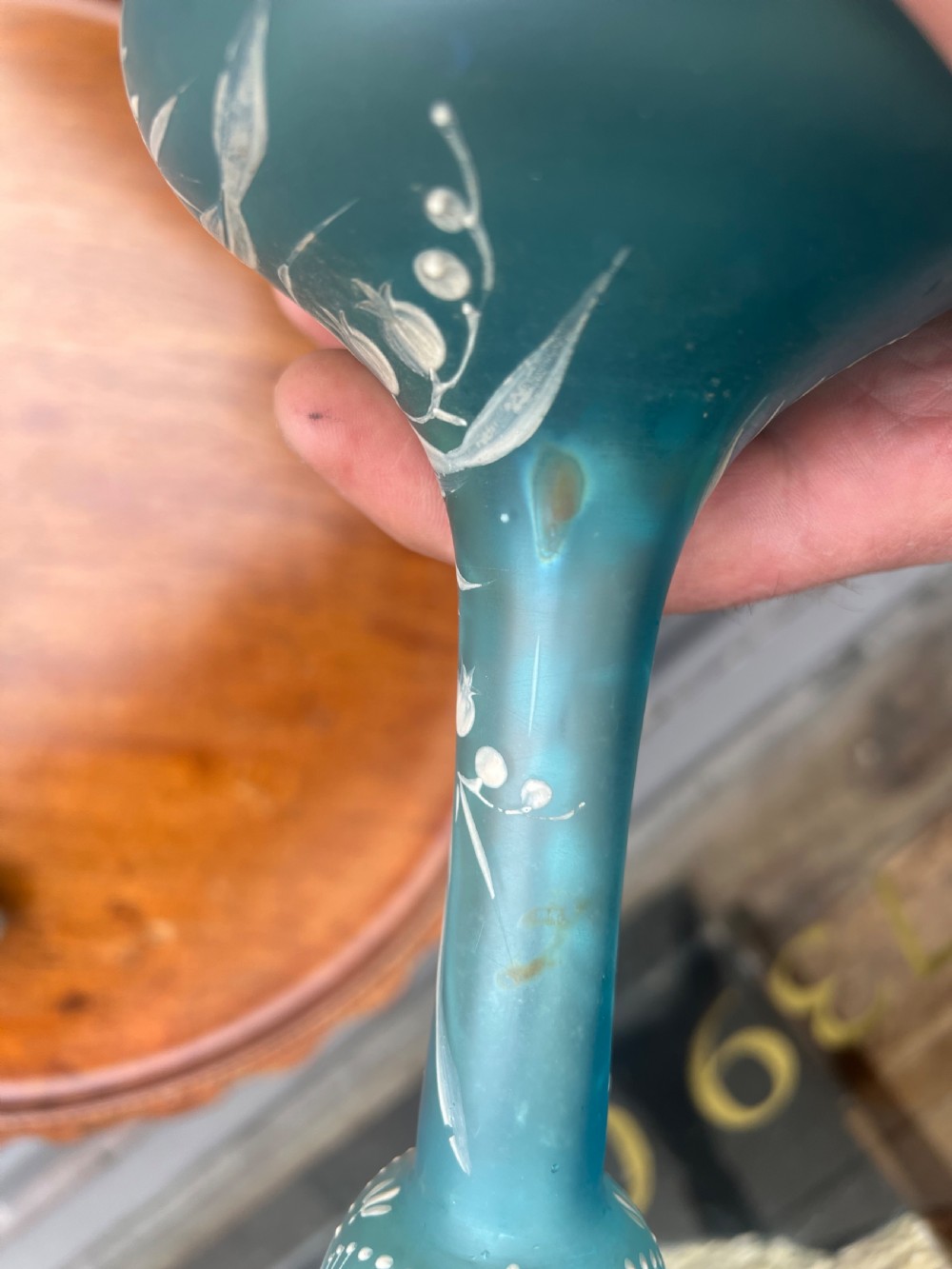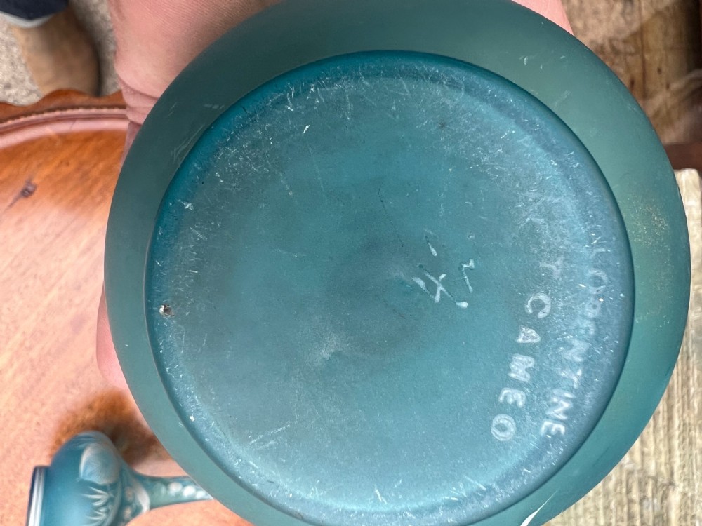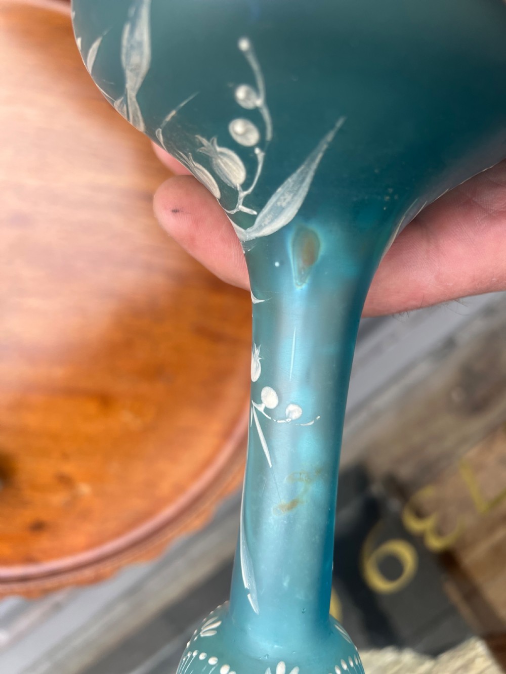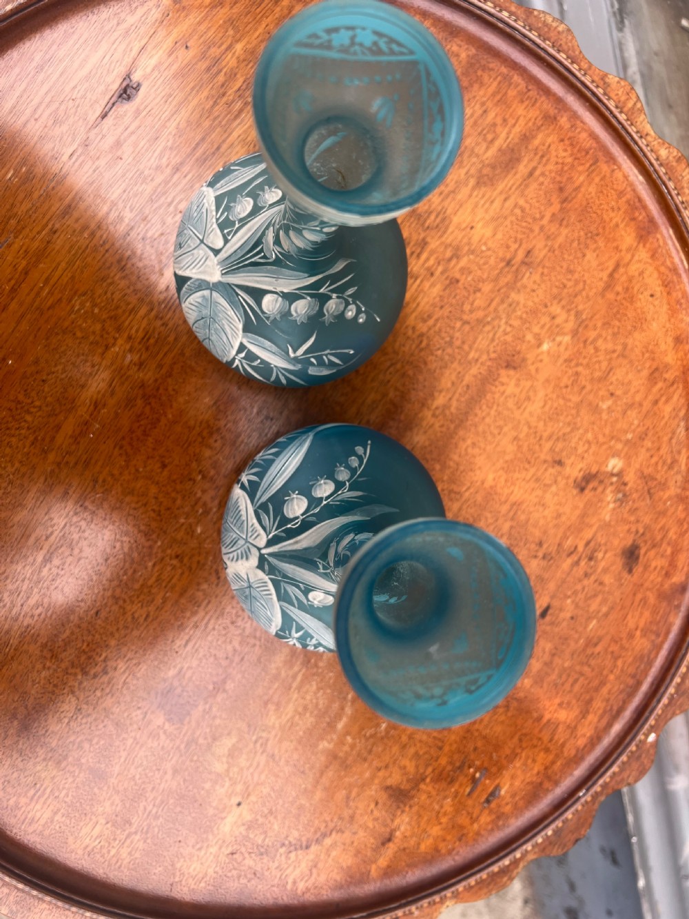 A pair of Thomas Webb and Co vases, blue glass with white cameo appliqué one marked on the base Florentine Cameo A very rare find and a pair Measures Height 20 cms Width 11 cms Condition Some very small bits of the white have been lost on the rim, but no chips to the glass or old breaks etc. One vase shows a few brown sections( photos) they are original and are in the glass and have an iridescence Delivery can easily be arranged for this item smaller items are generally sent free of charge to the uk, larger items can be sent via a courier, I keep this service as cheap as possible, the larger items are picked up and delivered to you within 7-10 days should you require a quicker delivery expect to pay at least double the normal cost. If you are unhappy with any item I offer a full money back guarantee once the item is safely back in my possession and undamaged as a result of misuse. Please feel free to ring me with any queries you may have, I'm always happy to discuss anything to do with antiques !! Opening hours Thursday to Saturday 10am - 6pm. Or by appointment.