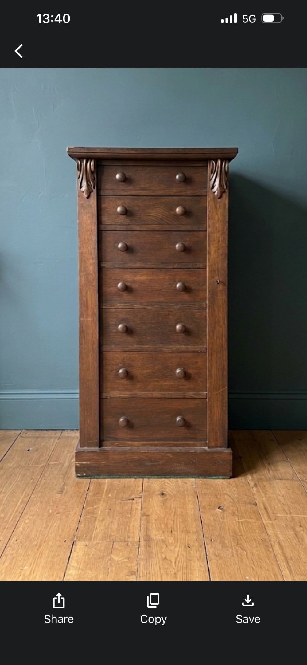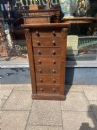 A Victorian oak Wellington chest with side lock mechanism and seven drawers Height 103 cms Width 51 cms Depth 35 cms Condition Maintains its original colour although the top has been sanded and repolished, retains its original lock and key Delivery can easily be arranged for this item smaller items are generally sent free of charge to the uk, larger items can be sent via a courier, I keep this service as cheap as possible, the larger items are picked up and delivered to you within 7-10 days should you require a quicker delivery expect to pay at least double the normal cost. If you are unhappy with any item I offer a full money back guarantee once the item is safely back in my possession and undamaged as a result of misuse. Please feel free to ring me with any queries you may have, I'm always happy to discuss anything to do with antiques !! Opening hours Thursday to Saturday 10am - 6pm. Or by appointment.