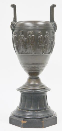 A small C19th bronze bust of Apollo on turned sockle base, wonderful colour
