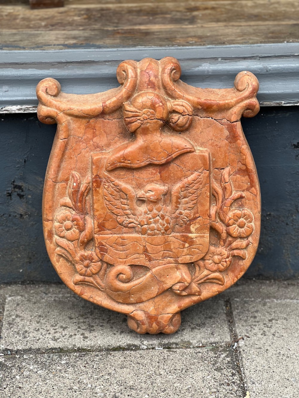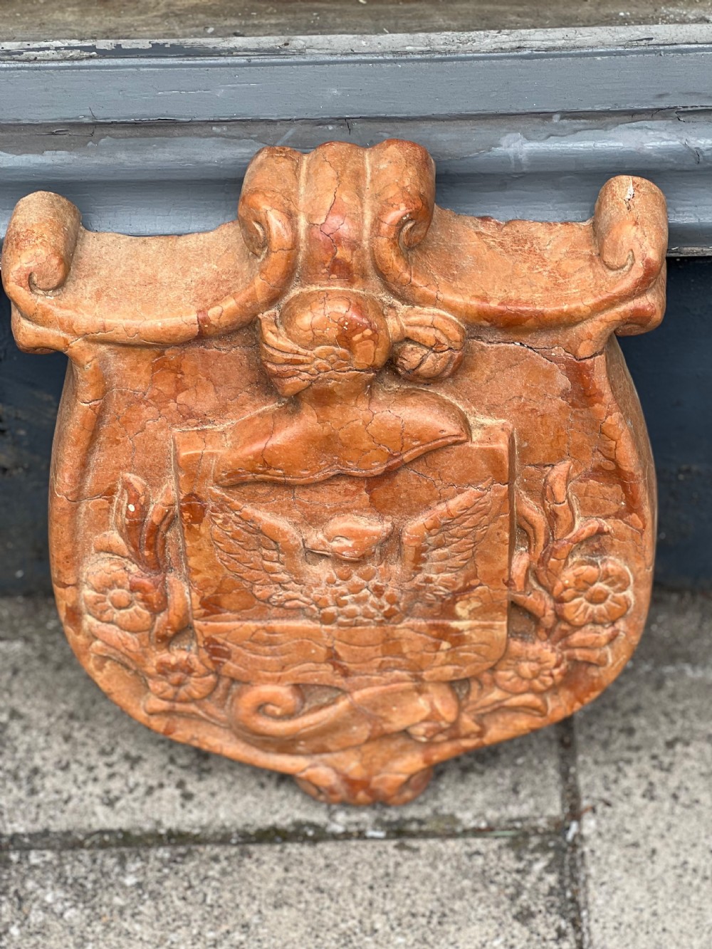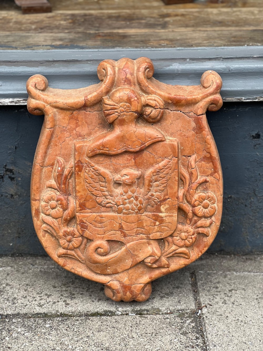 A late C17th marble crest, wonderful detailing and a good size Measuring Height 47 cms Width 37 cms Depth 9 cms Condition Good Delivery can easily be arranged for this item smaller items are generally sent free of charge to the uk, larger items can be sent via a courier, I keep this service as cheap as possible, the larger items are picked up and delivered to you within 7-10 days should you require a quicker delivery expect to pay at least double the normal cost. If you are unhappy with any item I offer a full money back guarantee once the item is safely back in my possession and undamaged as a result of misuse. Please feel free to ring me with any queries you may have, I'm always happy to discuss anything to do with antiques !! Opening hours Thursday to Saturday 10am - 6pm. Or by appointment.