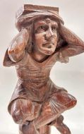C19th carved figures of jesters sitting on barrels