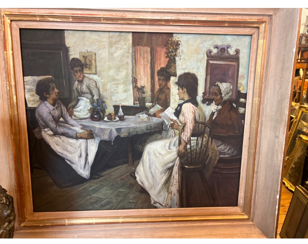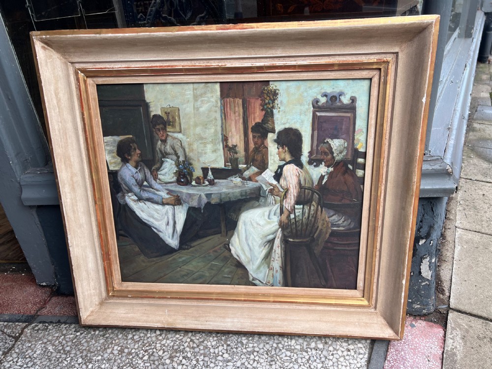 A large oil painting on board depicting the letter after the famous painting from the newlyn school artist Albert Chevallier Tayler, RBC (British, 1862-1925) Measuring Overall Height 72 cms Width 82 cms Condition Good, frame has wear but no damage Delivery can easily be arranged for this item smaller items are generally sent free of charge to the uk, larger items can be sent via a courier, I keep this service as cheap as possible, the larger items are picked up and delivered to you within 7-10 days should you require a quicker delivery expect to pay at least double the normal cost. If you are unhappy with any item I offer a full money back guarantee once the item is safely back in my possession and undamaged as a result of misuse. Please feel free to ring me with any queries you may have, I'm always happy to discuss anything to do with antiques !! Opening hours Thursday to Saturday 10am - 6pm. Or by appointment.