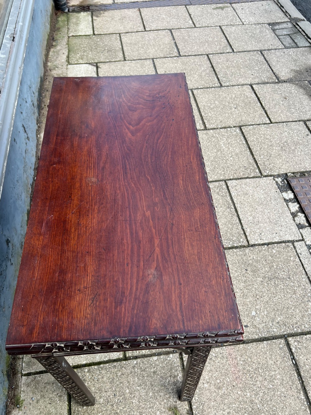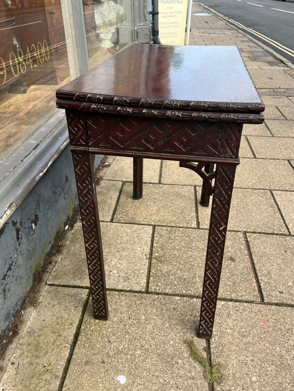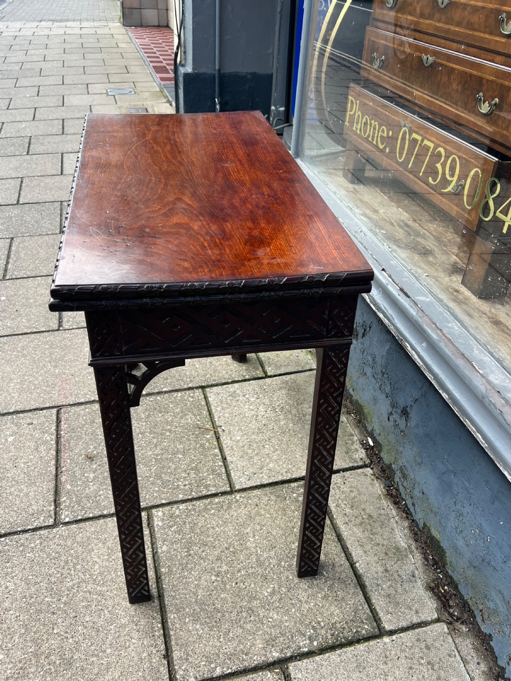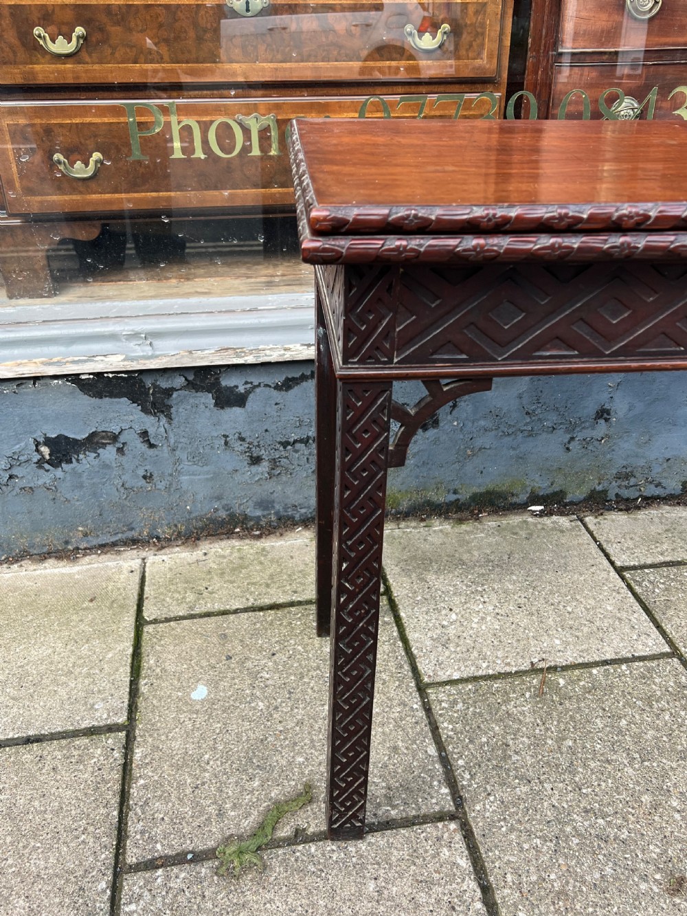 A small Chinese Chippendale style blind fretted tea table, this is made of Cuban mahogany