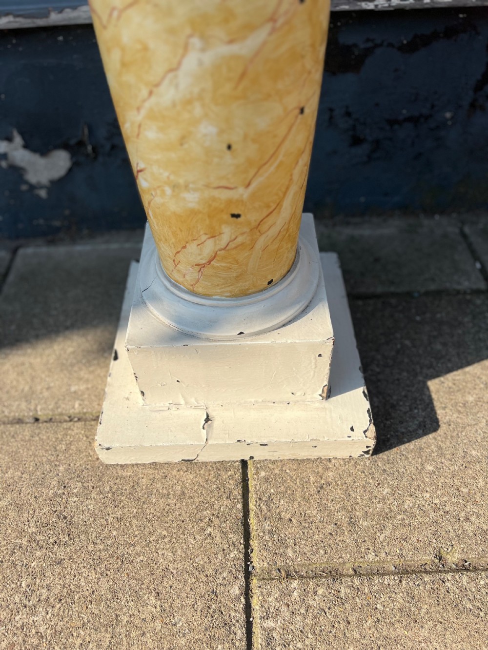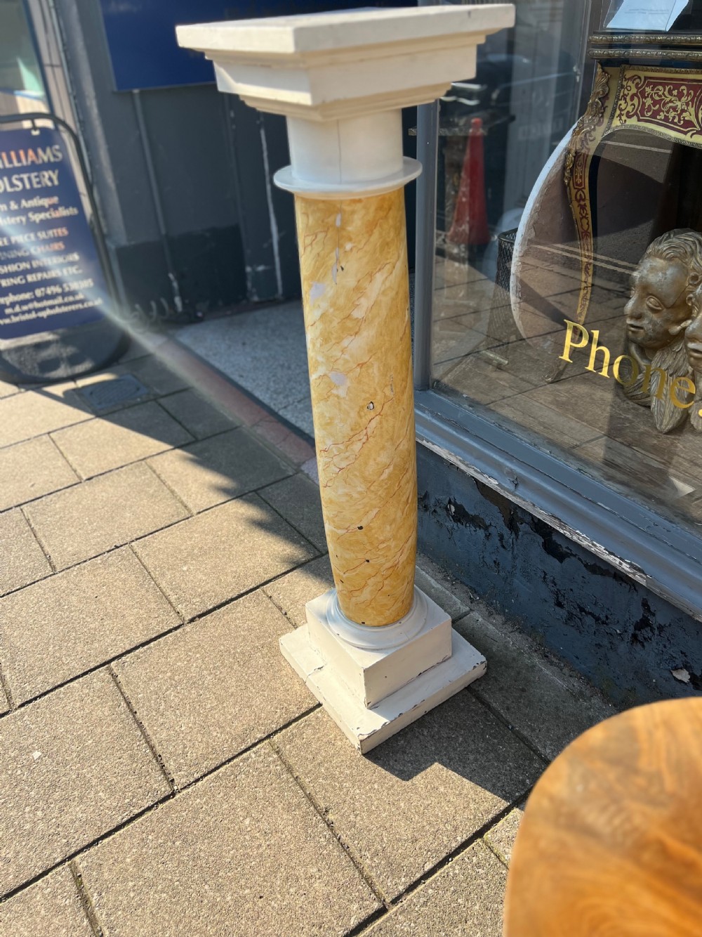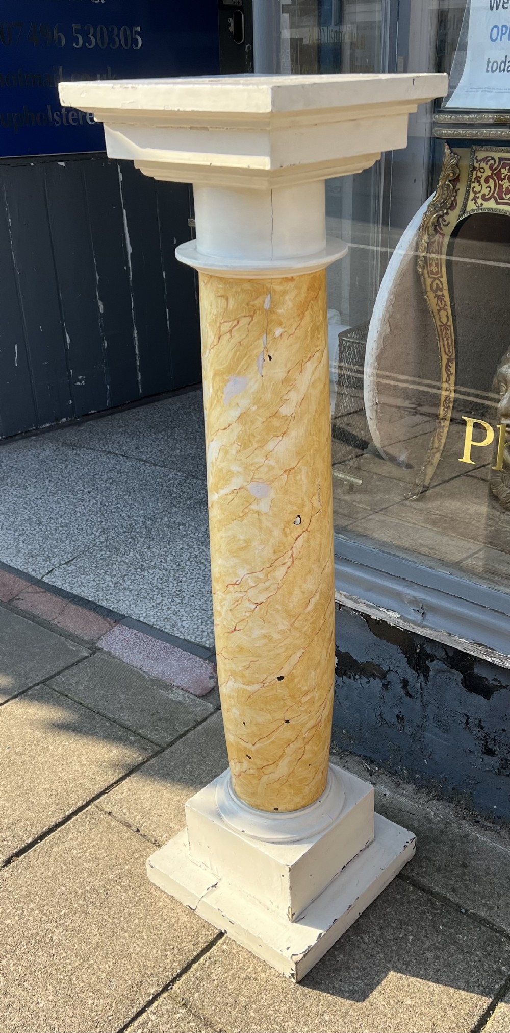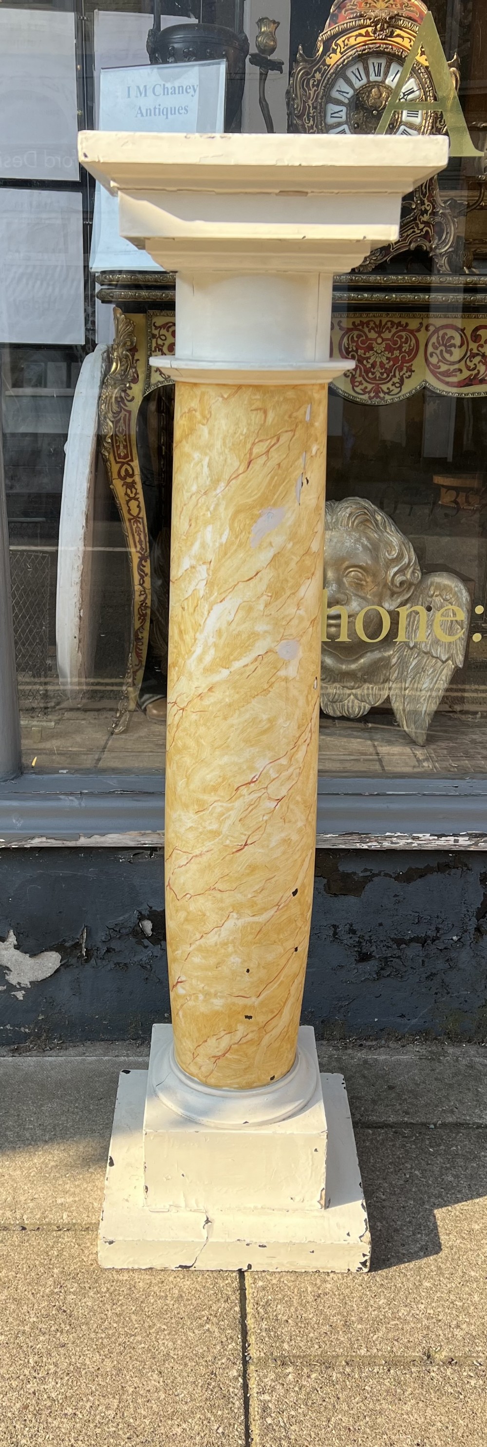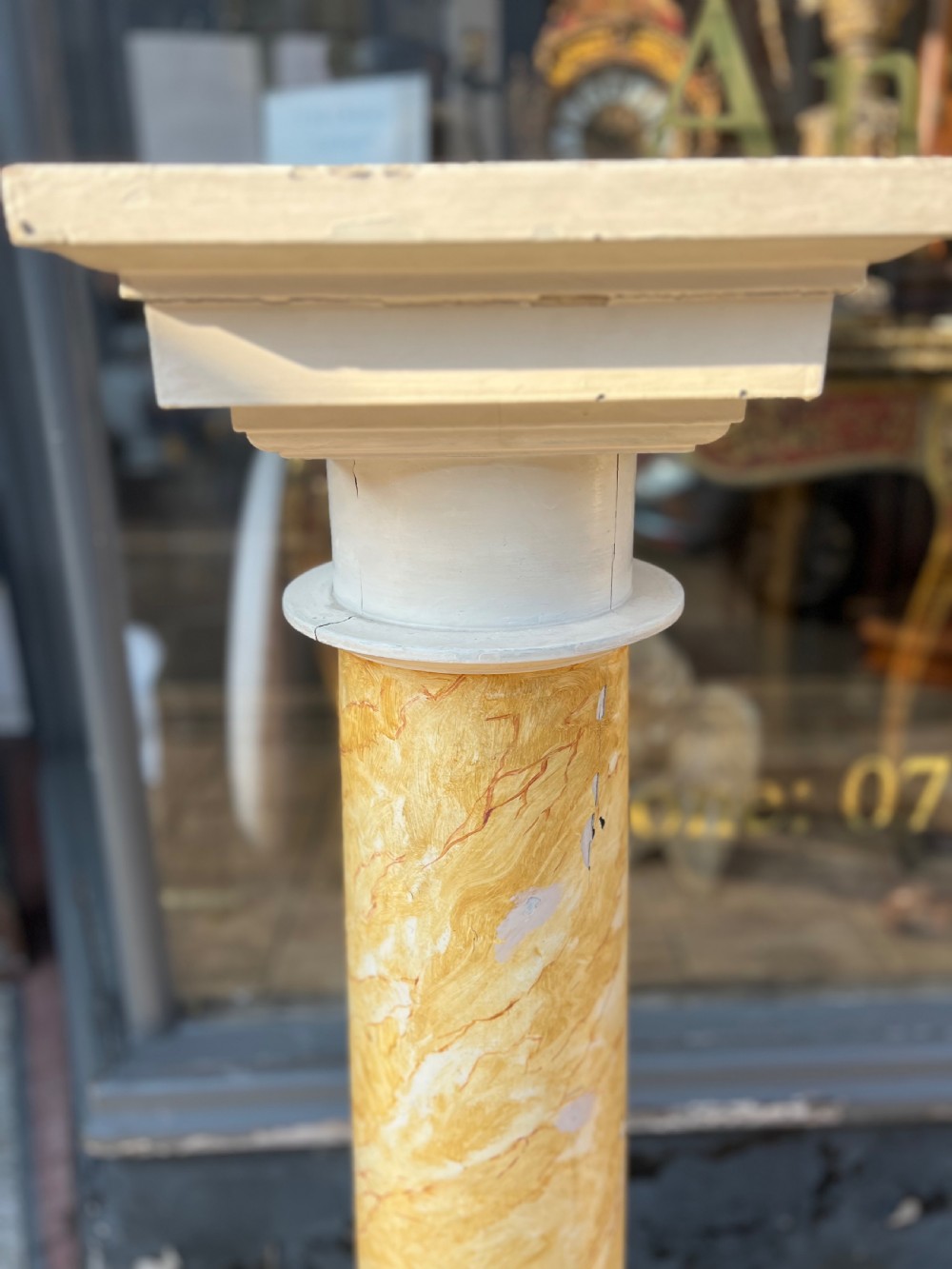 A C19th wooden column with turned socles the middle part painted to resemble sienna marble Measuring Height 122 cms Width 30 cms Depth 31 cms Condition Solid but some wear to the paint hear and there please view photos Delivery can easily be arranged for this item smaller items are generally sent free of charge to the uk, larger items can be sent via a courier, I keep this service as cheap as possible, the larger items are picked up and delivered to you within 7-10 days should you require a quicker delivery expect to pay at least double the normal cost. If you are unhappy with any item I offer a full money back guarantee once the item is safely back in my possession and undamaged as a result of misuse. Please feel free to ring me with any queries you may have, I'm always happy to discuss anything to do with antiques !! Opening hours Thursday to Saturday 10am - 6pm. Or by appointment.