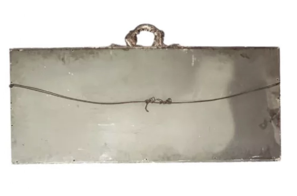 Classical inspired silvered overmantel wall mirror. Rectangular form with gadrooned border and crested garland pediment. Bevelled edge mirror inset to centre with original back panels in place. Measures Height 64cms Width122cms Condition Good Delivery can easily be arranged for this item smaller items are generally sent free of charge to the uk, larger items can be sent via a courier, I keep this service as cheap as possible, the larger items are picked up and delivered to you within 7-10 days should you require a quicker delivery expect to pay at least double the normal cost. If you are unhappy with any item I offer a full money back guarantee once the item is safely back in my possession and undamaged as a result of misuse. Please feel free to ring me with any queries you may have, I'm always happy to discuss anything to do with antiques !! Opening hours Thursday to Saturday 10am - 6pm. Or by appointment.