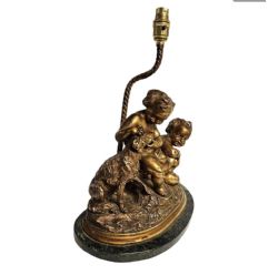 A polished spelter lamp after the bronze by Boret, signed the art Union of London.