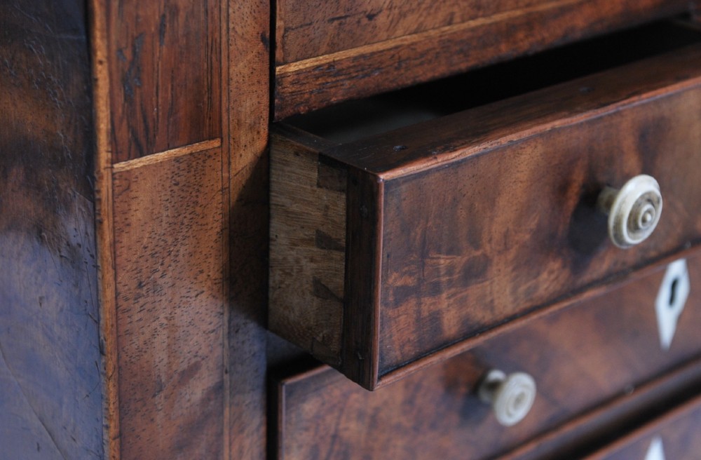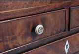A 19th century George III apprentice piece Scottish chest of drawers. Raised on bracket feet with 2 short over 3 deep graduating drawers, the escutcheons and handles are ivory. Inlaid details to the frieze with flared top above.