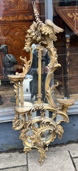 Condition: Tarnishing and flaking to mirror plate, two recesses to rear of frame suggest old losses to surmount, the backing board has been replaced by some modern plywood.