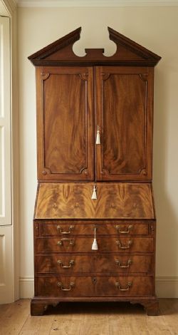 A Regency inlaid brass and parcel-gilt bookcase, the gilt scroll palmette pediment above two glazed doors enclosing four adjustable shelves, on base glazed with two doors enclosing a single shelf, with scroll upright supports, on scroll feet, measuring Height 211 cm Width 110 cm Depth 46 cm Condition Slight rubbing and over painting to the carved pediment, keys missing from brammah locks, three shelves look to be later replacements, the base has some some small losses of brass line inlay, and normal wear and signs of use otherwise straight out of a house condition. Delivery can easily be arranged for this item smaller items are generally sent free of charge to the uk, larger items can be sent via a courier, I keep this service as cheap as possible, the larger items are picked up and delivered to you within 7-10 days should you require a quicker delivery expect to pay at least double the normal cost. If you are unhappy with any item I offer a full money back guarantee once the item is safely back in my possession and undamaged as a result of misuse. Please feel free to ring me with any queries you may have, I'm always happy to discuss anything to do with antiques !! Opening hours Thursday to Saturday 10am - 6pm. Or by appointment.