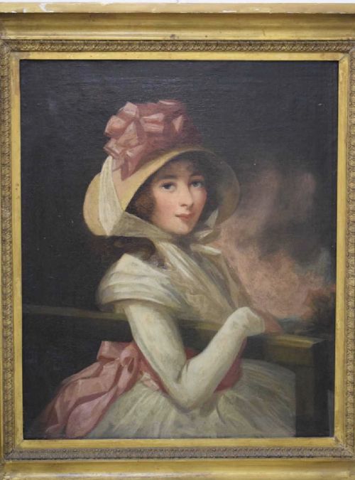 English School - Oil on canvas - Portrait of a lady 19th Century English School - Oil on canvas - Portrait of a lady wearing a broad bonnet, tied around her head with a pink ribbon, possibly Emma, Lady Hamilton (nee Lyon, 1765-1815, infamous Mistress of Lord Horation Nelson), in the manner of George Romney, (1734-1802), in a gilt swept frame Measuring Height 74cm Width 61cms Depth 6 cms Condition Original, picture would benefit from a clean, frame is pretty good except some small losses to the front edge Delivery can easily be arranged for this item smaller items are generally sent free of charge to the uk, larger items can be sent via a courier, I keep this service as cheap as possible, the larger items are picked up and delivered to you within 7-10 days should you require a quicker delivery expect to pay at least double the normal cost. If you are unhappy with any item I offer a full money back guarantee once the item is safely back in my possession and undamaged as a result of misuse. Please feel free to ring me with any queries you may have, I'm always happy to discuss anything to do with antiques !! Opening hours Thursday to Saturday 10am - 6pm. Or by appointment.